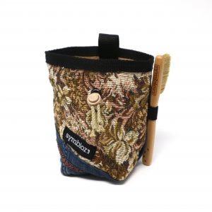 Le sac à magnésie SYMBIOZ CLIMBING est fabriqué par nos soins à la main dans nos ateliers de Biarritz à partir de tissus recyclés et de matériel fabriqué en France. Durant le design de ce sac, nous avons pensé à son utilisation en salle ou en extérieur, mais surtout à sa praticité. De ce fait il a une grande ouverture, son ouverture et fermeture est facile. Il possède deux systèmes distinct de portage, un par ceinture à l’arrière du sac, et une sangle sur le haut du sac pour être facilement attaché au baudrier, et éviter de renverser votre magnésie, même dans les plus gros dévers! il est doublé avec de la polaire afin de ne pas gâcher vos derniers restes de magnésie…