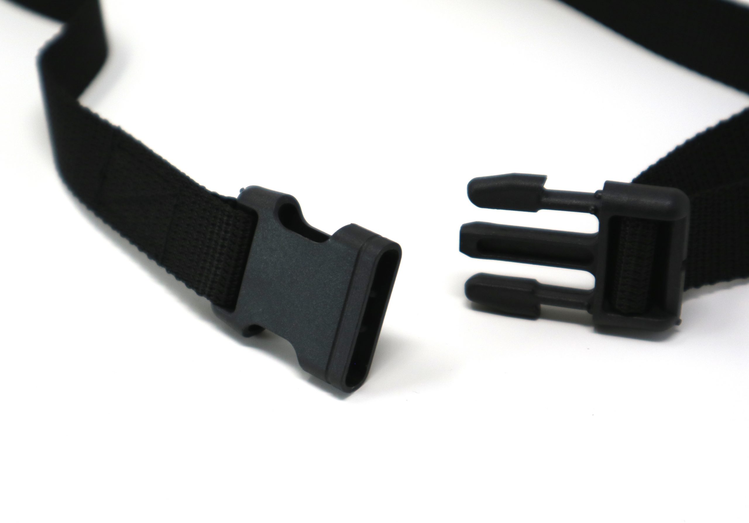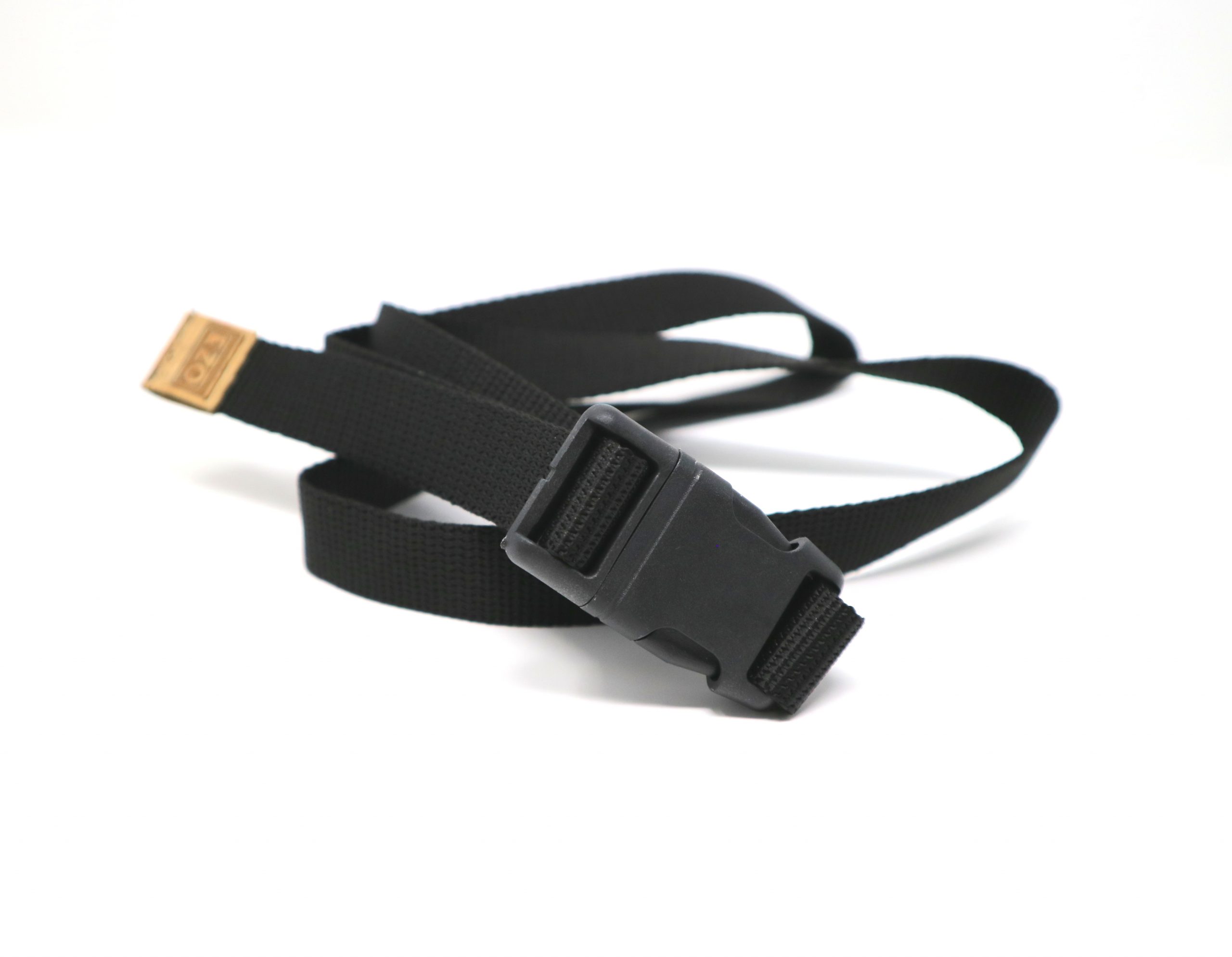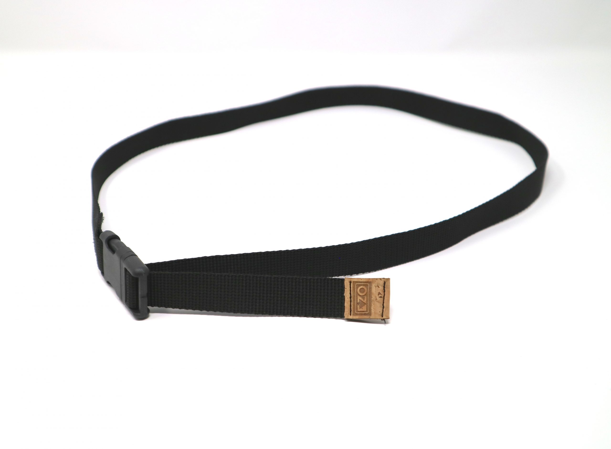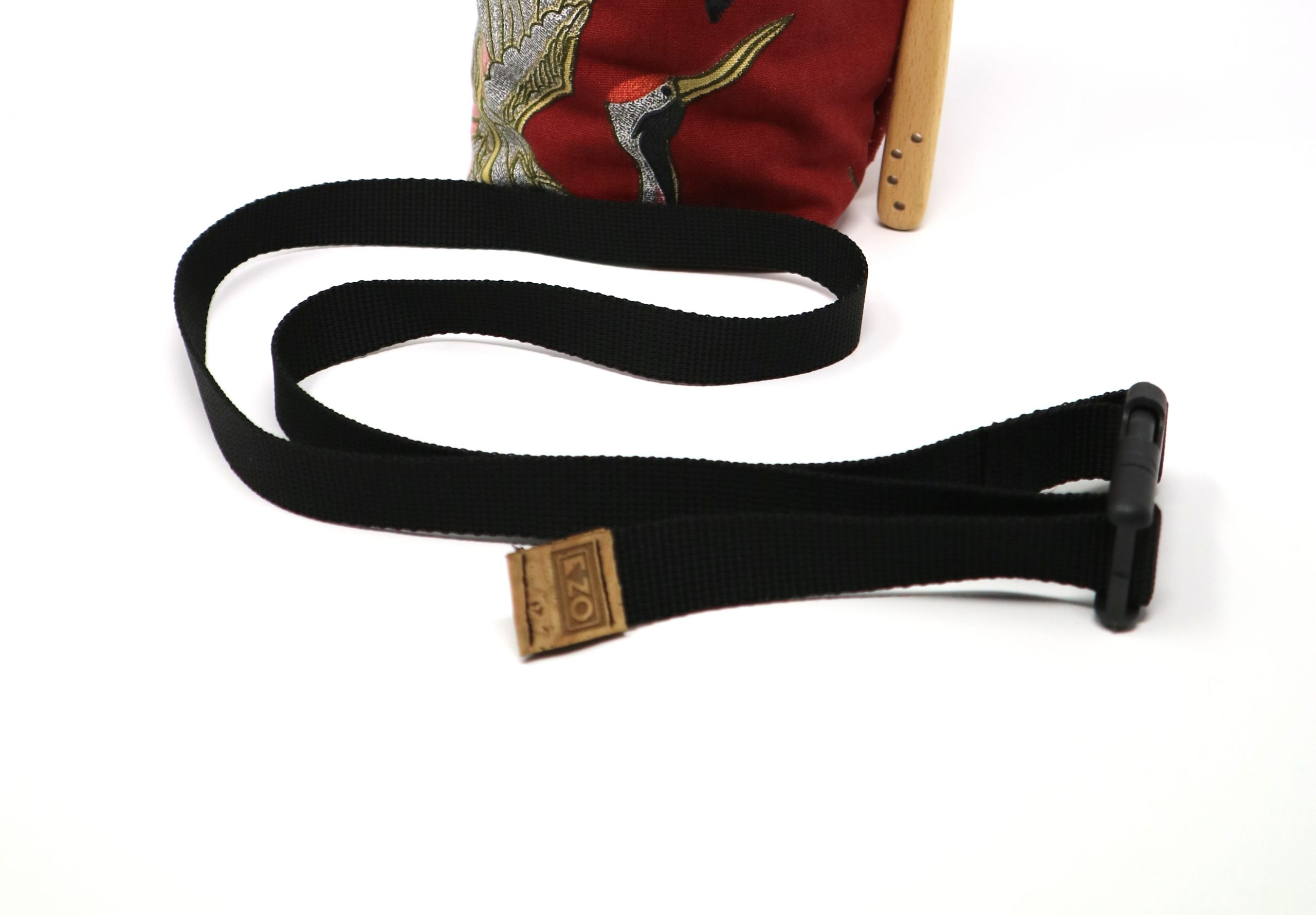 Notre ceinture en sangle noire faite main est pratique, facile à mettre sur votre sac à magnésie, facile à enlever et ajuster avec sa boucle clip, simple avec un logo en liège beige!